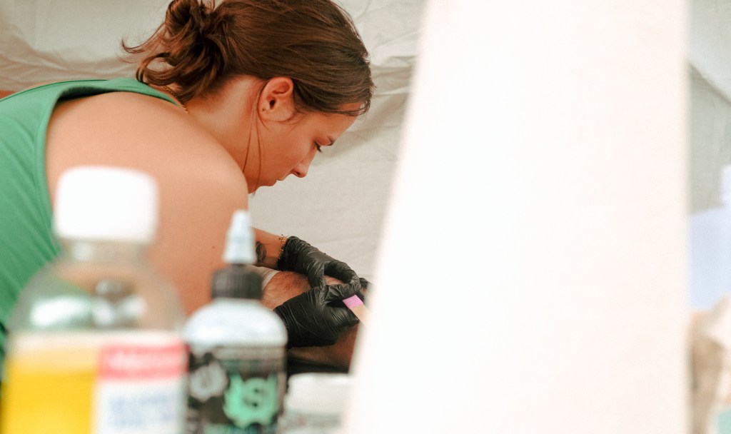 Stand de tatouage lors d’un évènement Landais.